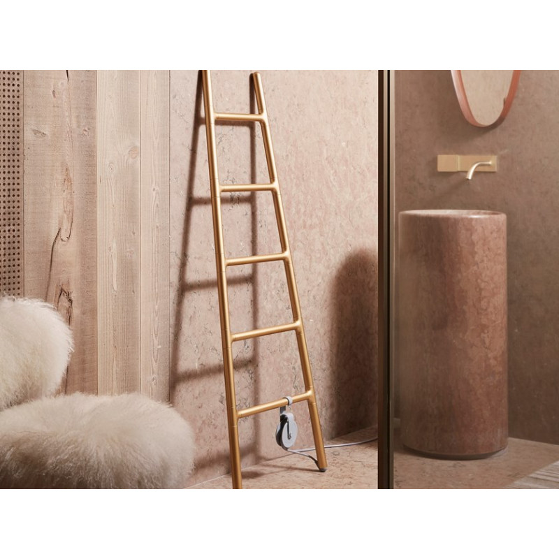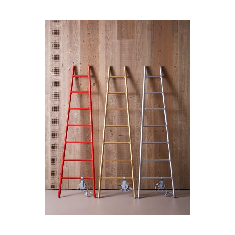 Scaletta, plug&play, est réalisé en aluminium dans une vaste gamme de couleurs et est disponible en 2 versions : mural et freestanding, les 2 dotés d'une poulie qui enroule le câble électrique. Scaletta peut être muni de l’accessoire Regman: régulateur manuel de température pour maintenir constante la température réglée. La version free-standing peut être munie d’un plan d’appui pratique.