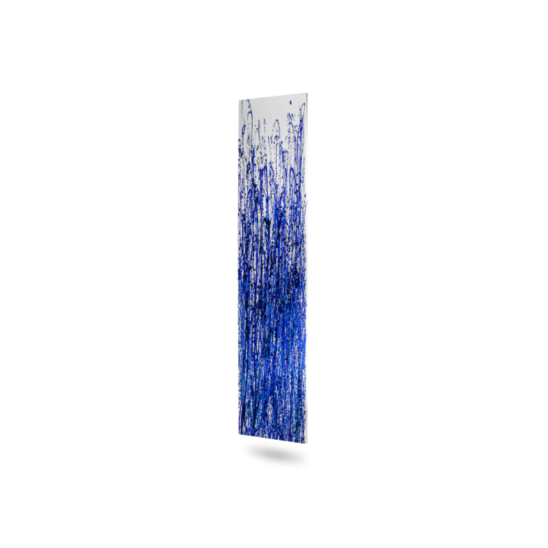 Tel un jardin imaginaire teinté de bleu, symbole de sérénité, Amadhy traduit la matière naturelle à l’état brut, comme une source désaltérante.