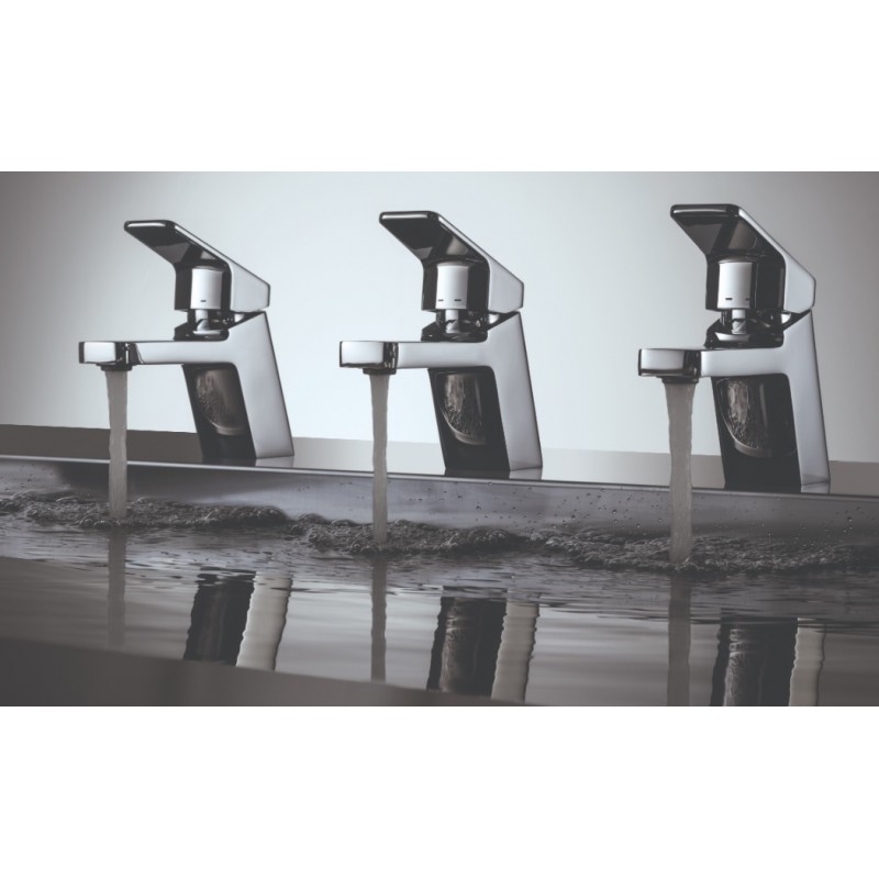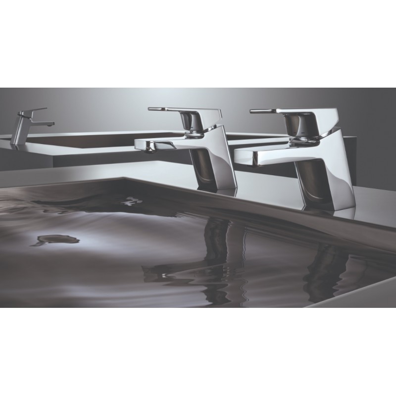 Mitigeur de lavabo LINE: Robinetterie élégante et fonctionnelle aux lignes carrées et manettes courtes.