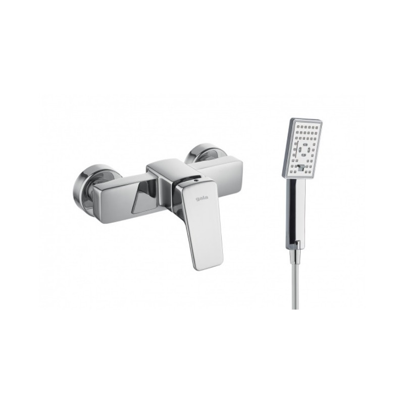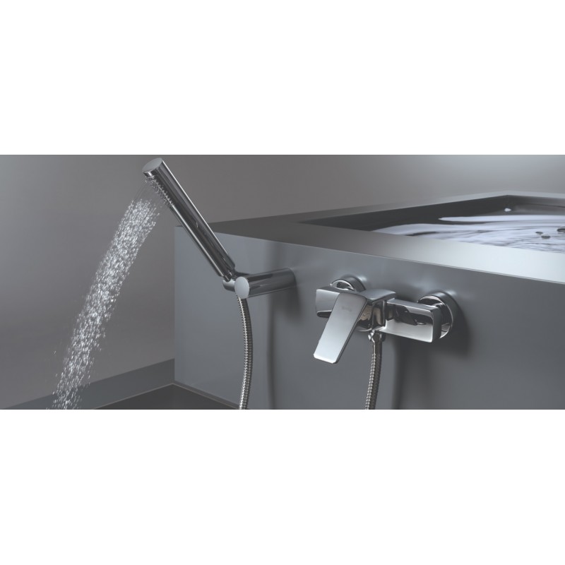 Mitigeur pour douche LINE, au design élégant et fonctionnel. Cette robinetterie de douche est attrayante, moderne et compacte. Cartouche écologique. Avec flexible de 175 cm, douchette à main et support.