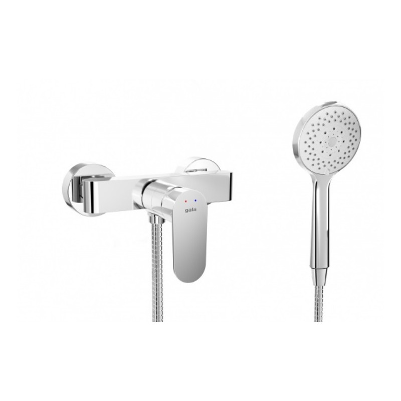 Equipement de douche : flexible de 170 cm + douchette-à-main de Ø 12 cm (à 4 fonctions : massage + pluie + pluie douce + doux) + support.