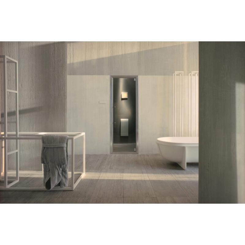 Le générateur, placé dans le boîtier d’encastrement au mur pendant l’installation des systèmes hydrauliques, est commandé d’un panneau vitré à icônes rétro-illuminées.